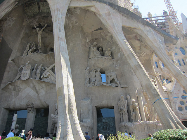 Tiene tres fachadas diferentes que recuerdan tres épocas de la vida de Jesús: su nacimiento, su pasión y su gloria. Cuando por fin se finalice esta obra tendrá 18 torres: doce por los apóstoles, cuatro sobre el crucero en honor a los evangelistas, una para la Virgen sobre el ábside y la torre central en honor a Jesús.