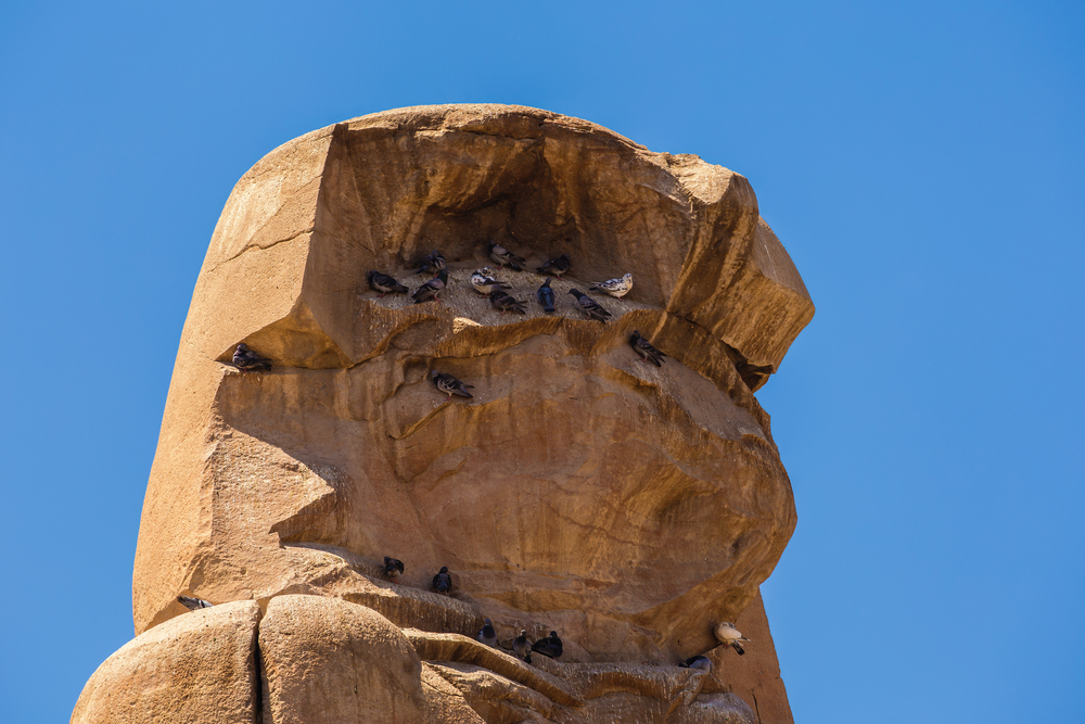 Un terremoto acontecido en el año 27 a.C. dañó a los colosos de Memnón. Desde entonces, se decía que las estatuas “cantaban” cada mañana al amanecer, pues la situada más al sur producía un extraño sonido musical. Decenas de turistas griegos y romanos decidieron entonces trasladarse al lugar para ser testigos de este fenómeno.