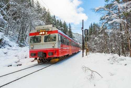 Conecta las ciudades de Bergen y Oslo. Se puede hacer parada en Myrdal para tomar el tren turístico hasta Flam, que nos lleva a la preciosa cascada de Kjosfossen.